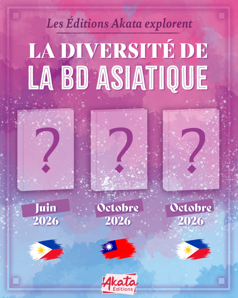 Être éditeur, c’est savoir prendre des risques et se renouveler sans se trahir. Aussi, aujourd’hui, c’est avec un plaisir non dissimulé que nous vous annonçons que le catalogue d’Akata va continuer de s’enrichir avec des ouvrages de l’Asie de l’Est et du Sud-Est. Ce sont trois projets qui sont déjà prévus pour 2026 : deux des Philippines, un de Taïwan.