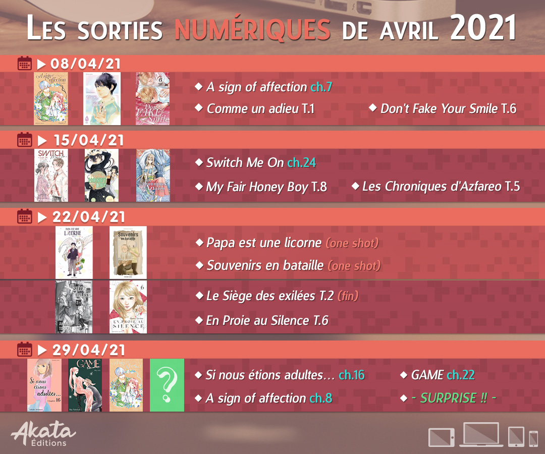 C'est désormais une habitude : le début de mois rime avec l'annonce de notre planning de publications au format numérique ! Cela dit, étant donné le contexte global, il n'est pas impossible que nous continuons à arranger notre planning de livres au format papier, ce qui pourrait avoir un impact sur ces publications numérique, en conséquence. En tout cas, tous les nouveaux titres du mois sont bien prévus au format numérique.