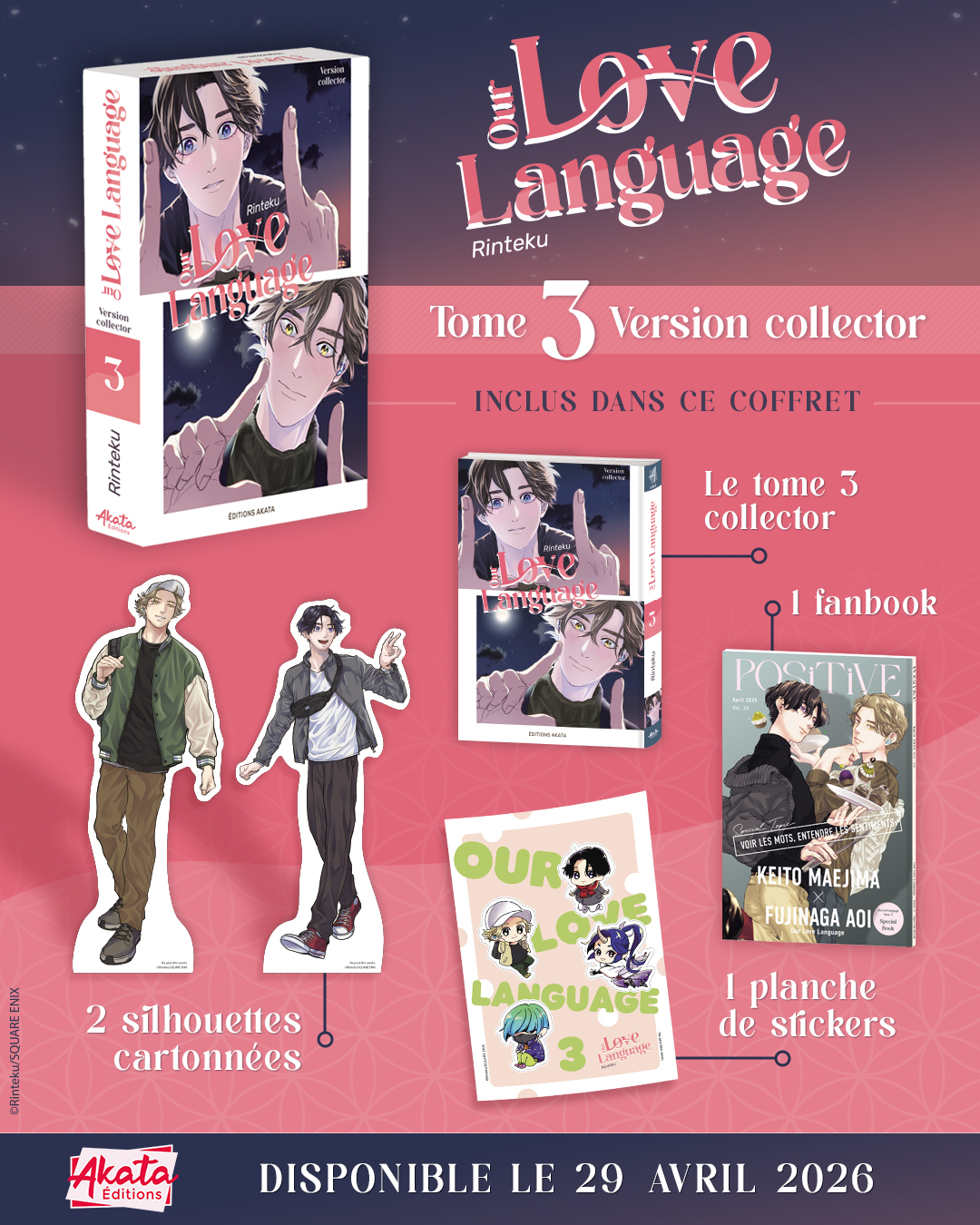 Les fans d'Our Love Language vont être comblés : à l’occasion de la sortie du tome 3, nous vous proposerons, en plus de l'édition simple, un coffret collector exclusif avec une sélection de bonus aussi élégants qu’adorables !